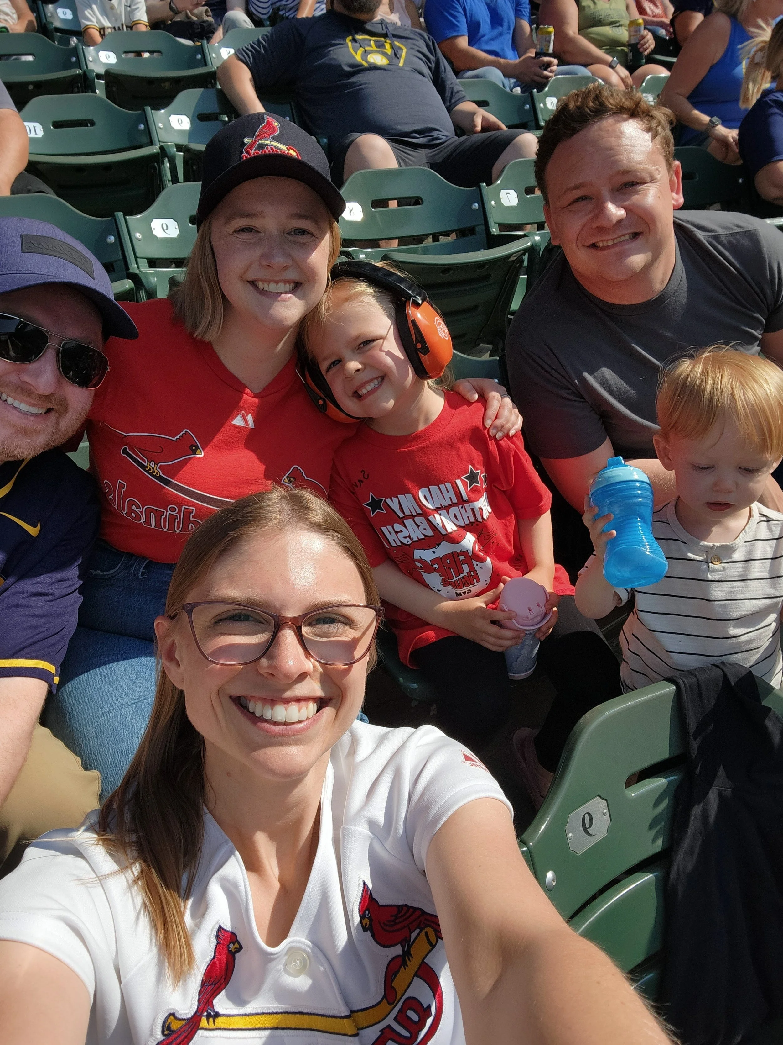Enjoying a baseball game with Alison's sister Alessa, her husband Matt, and our niece and nephew April and Zeke.