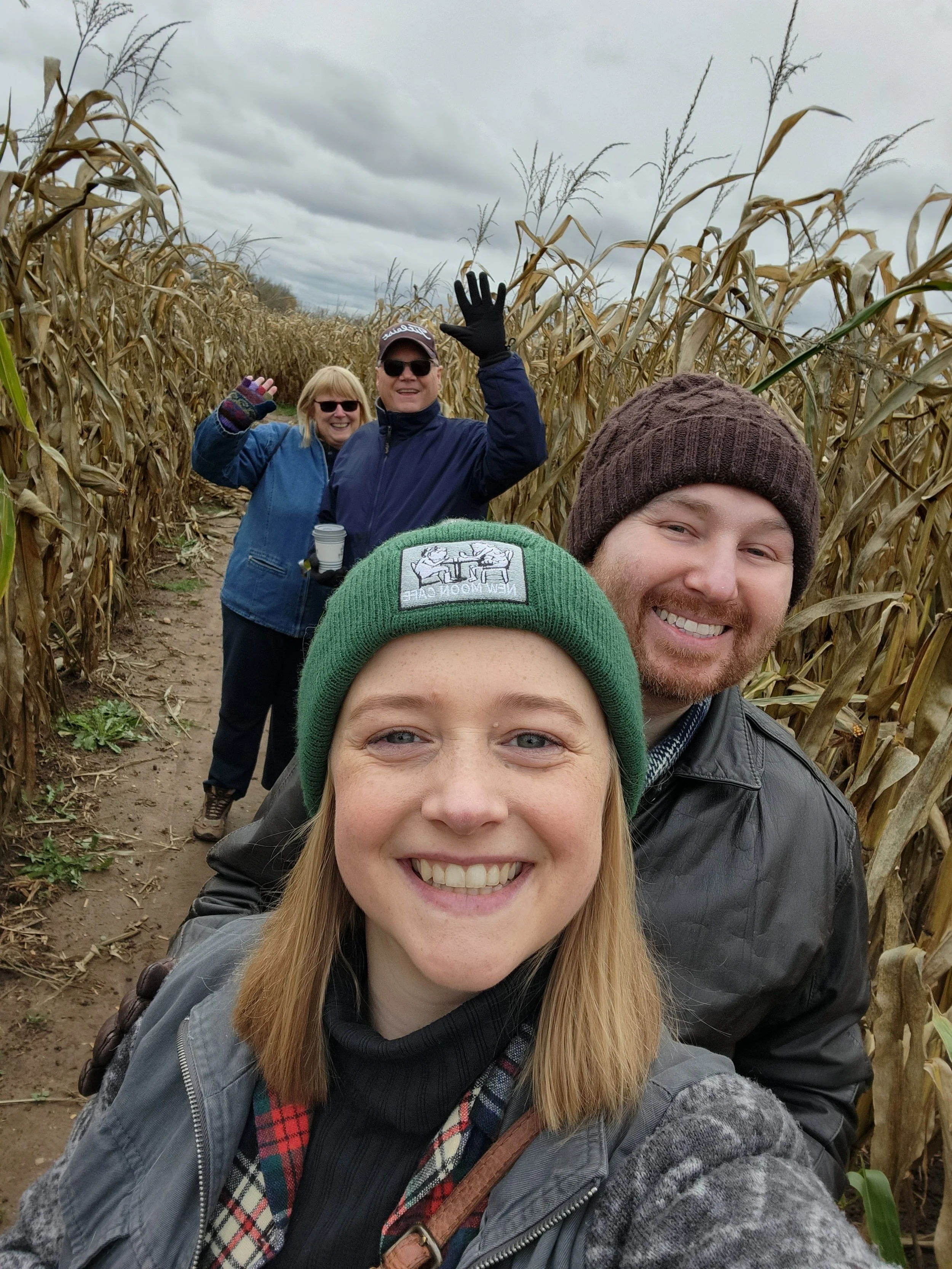 Finding our way through a corn maze with Alison's parents