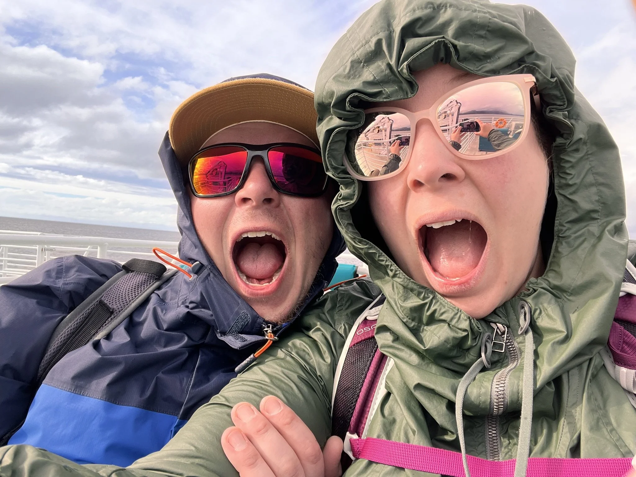 Wind and rain can’t stop us from having fun on a ferry ride in Alaska!