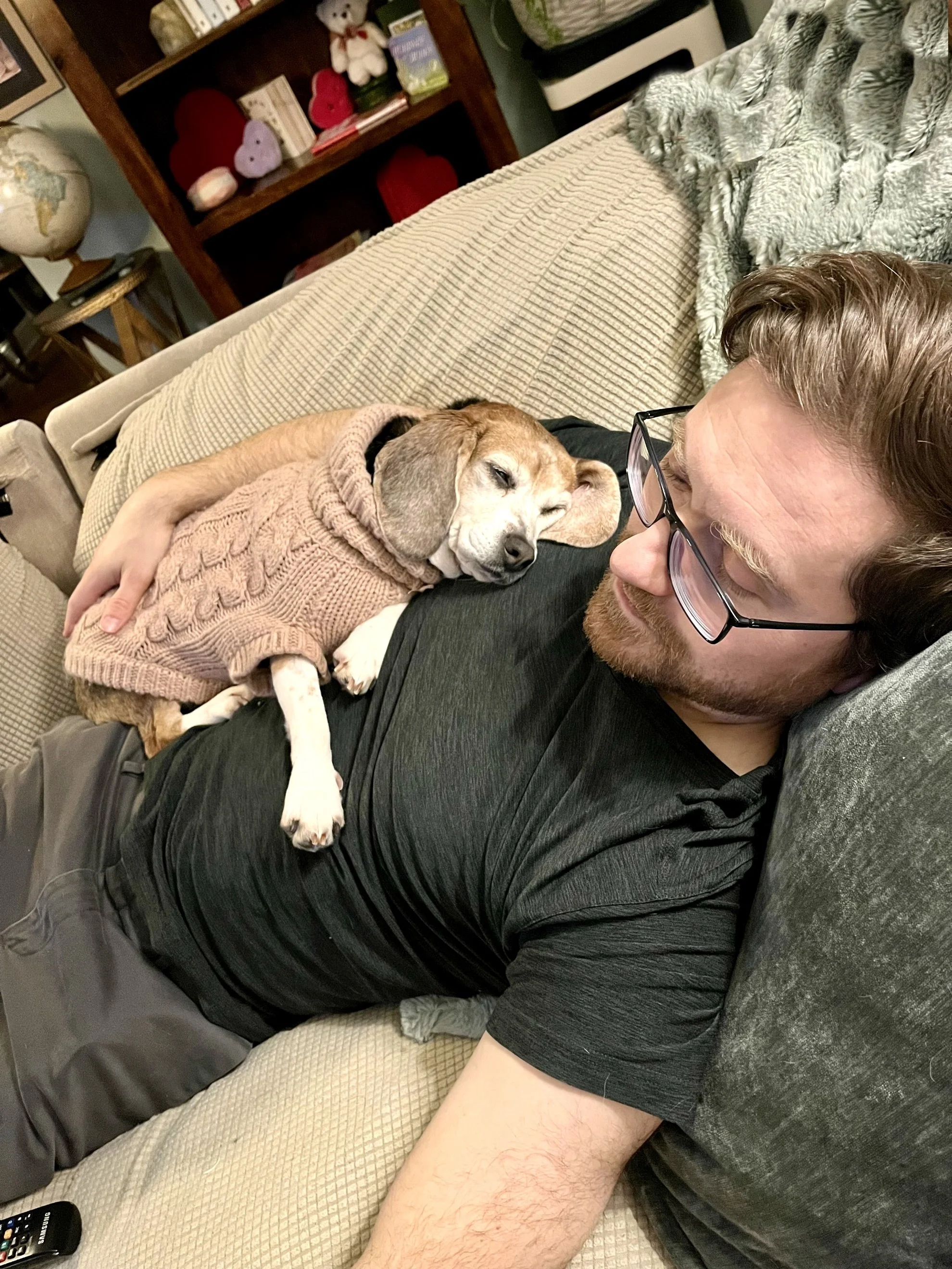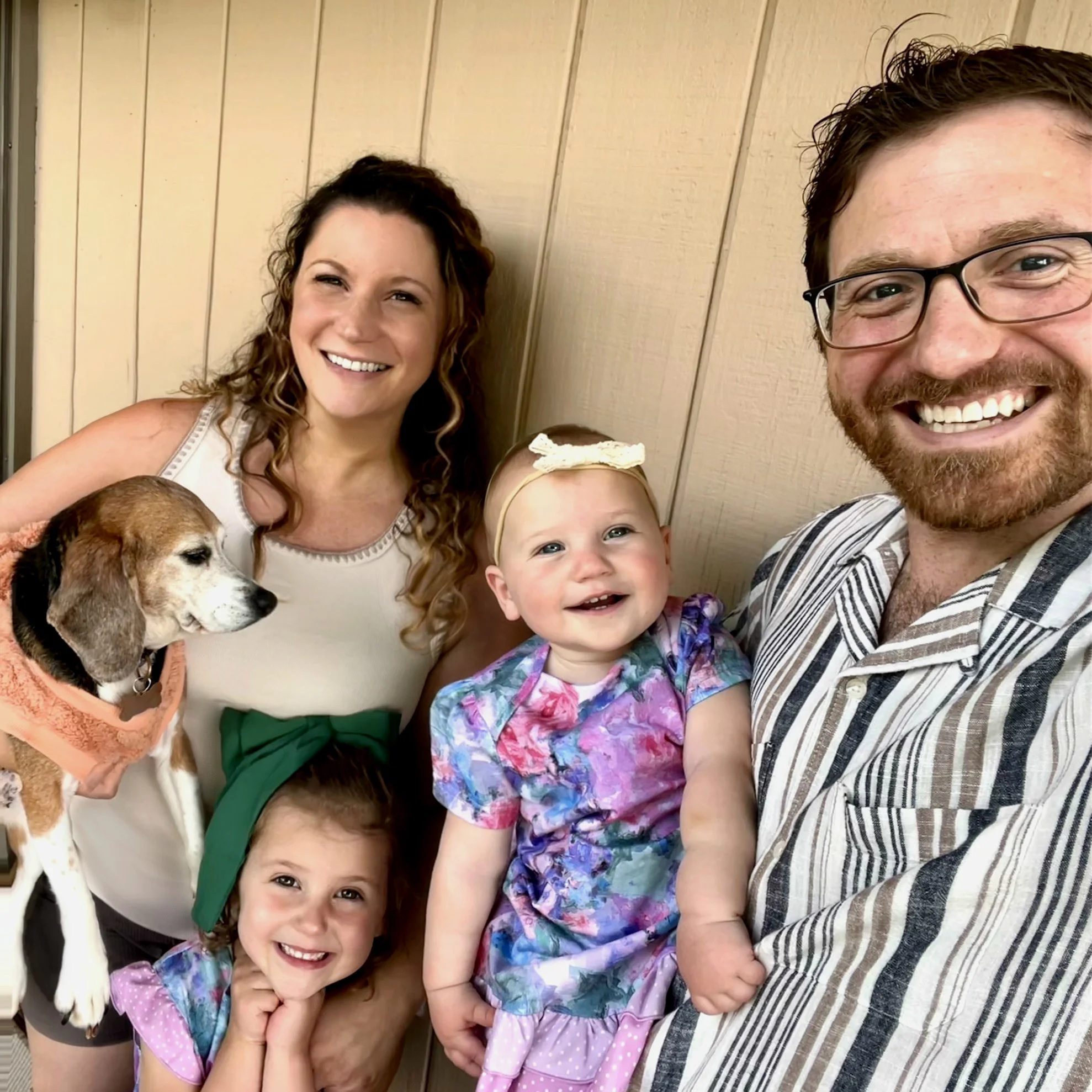 And then we started to find our wee people! After marrying in early 2020, we welcomed home Kenna, who was born towards the end of 2020. Cosie followed at the beginning of 2024, just before we moved into our forever home. We then adopted our Beagle, Sammi, later that year. Then we adopted Shortcake, our bully/Dachshund mix, and that is where our family stands today.