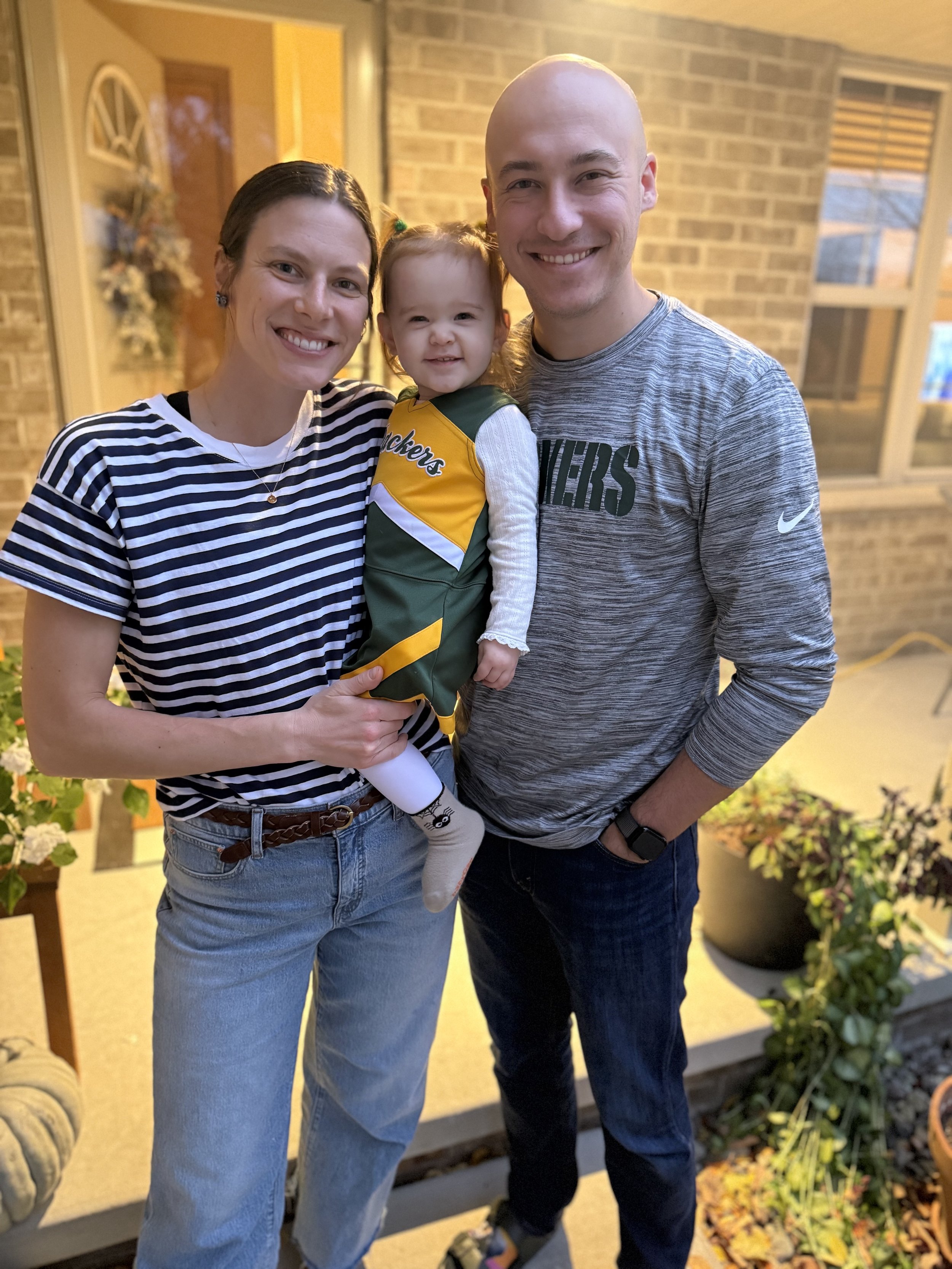 We live in Suamico, Wisconsin, in a quiet, family-friendly neighborhood. Our home is close to great schools, walking trails, parks, and several favorite ice cream shops. Most afternoons, the streets are filled with the sounds of children playing, biking to nearby ponds, and families out walking together. It's a community we love and feel so lucky to raise Charlotte in.